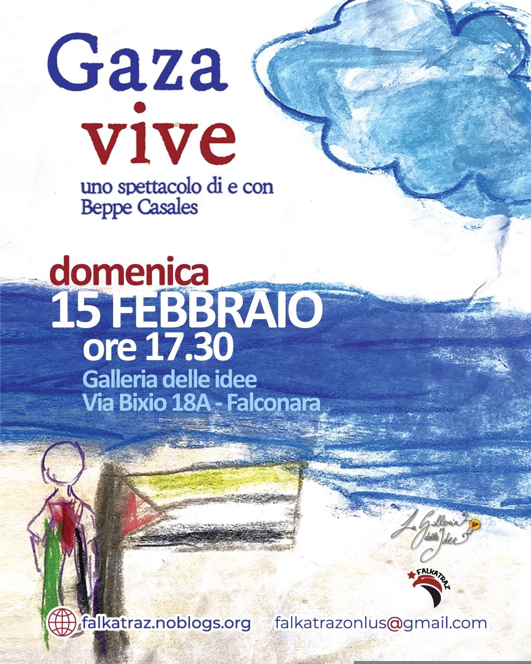 "Un genocidio non nasce per caso, e non è mai fine a sé stesso. Quello che oggi accade a Gaza ha radici profonde, intrecciate alle vite delle persone che la abitano. Gaza vive cerca, con il linguaggio del teatro, di fare ciò che il poeta palestinese Refaat Alareer chiedeva ai suoi studenti: raccontare storie di perdita, di sopravvivenza e di speranza. Come antidoto alla morte. Come ultimo gesto di resistenza. Lo spettacolo segue la vicenda di una famiglia di Gaza, prima e dopo il 7 ottobre 2023: dalla gioia semplice di una gita al mare, all’orrore delle bombe e della fame. La vita dei palestinesi è schiacciata da un’ideologia – il sionismo israeliano – che ha portato pulizia etnica, apartheid e, infine, genocidio. Un’ideologia che giustifica il massacro, nata molto prima di quel 7 ottobre… Eppure, come scriveva Alareer, la storia di Gaza non è solo una storia di perdita. È anche una storia di speranza. Perché razzismo, violenza e morte non possono fermare la vita. Gaza vive in ogni desiderio del suo popolo. Gaza vive in ogni parola che racconta sorrisi, amore e lotta."