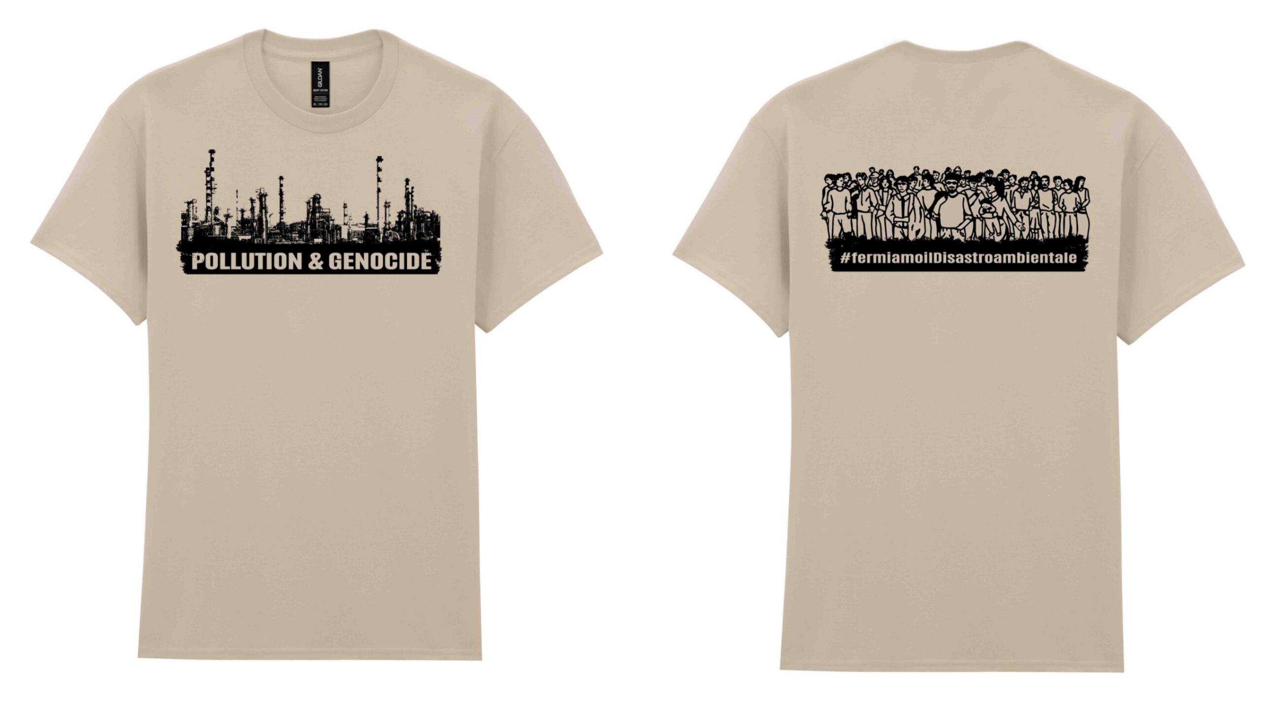 #Pollution&Genocide sono le nuove Tshirt in colori sand e offwhite per sostenere #fermiamoildisastroambientale