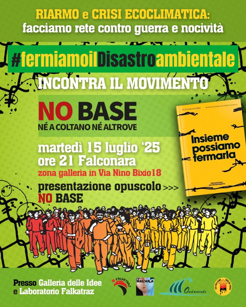 Martedì 15 luglio in Galleria a Falconara Marittima #fermiamoildisastroambientale ospite gli attivisti del movimento toscano No Base, né a Coltano né altrove, nella cornice di un loro tour estivo promosso dalla Campagna Per il clima Fuori dal fossile, per incontrare vecchi e nuovi territori in lotta e fare rete contro guerra e nocività.